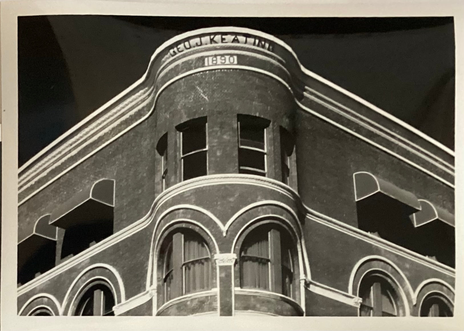 Black and white photographs of architectural detail of the Louis Bank of Commerce, Yuma, and Keating buildings. Located on rotating stand with postcards and greeting cards.